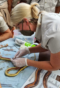 They explained the various snake bites, the different venoms, how to identify the snake from the bite and what to do in case of a bite. Dr Briner explained snake biology and allowed us (with her guidance) to do a necropsy on an Olive Grass Snake, which was found DOR (Dead On Road). In its stomach, we found several geckos & skink tails. Amazeballs!